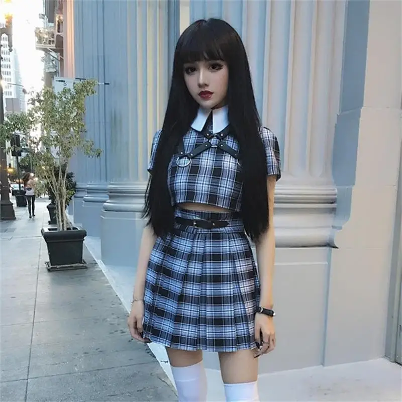 Special Offer InstaHot gótico de cintura alta faldas plisadas mujeres 2019 Punk estilo escolar acanalado negro plisado Mini faldas hebilla Streetwear primavera Discount 40% Today!